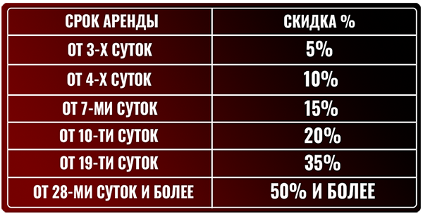СКИДКА ЗА ДЛИТЕЛЬНОСТЬ АРЕНДЫ