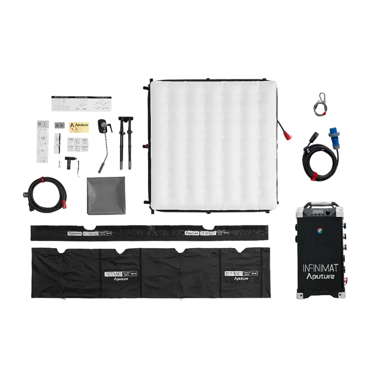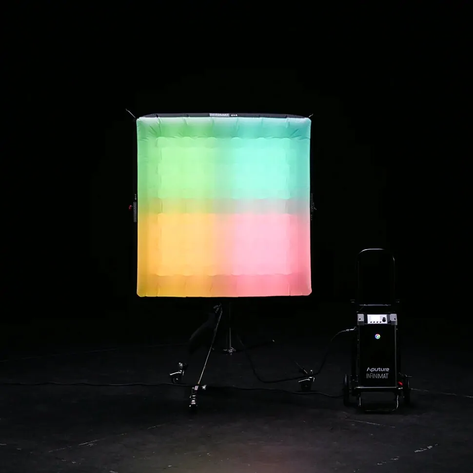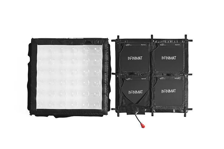 INFINIMAT — это высокофункциональные RGBWW панели. Модульный дизайн позволяет адаптироваться к различным съёмочным ситуациям, получая наилучшее освещение. Осветитель имеет конструкцию надувной панели, а значит свет получается мягким, словно при использовании софтбокса. Также предусмотрена возможность установки сот и юбки, что позволяет гибко контролировать угол луча и резкость теней. Размер пикселя в больших панелях может быть 1x2 или 2x2 для получения нескольких цветов в пределах одного осветителя
